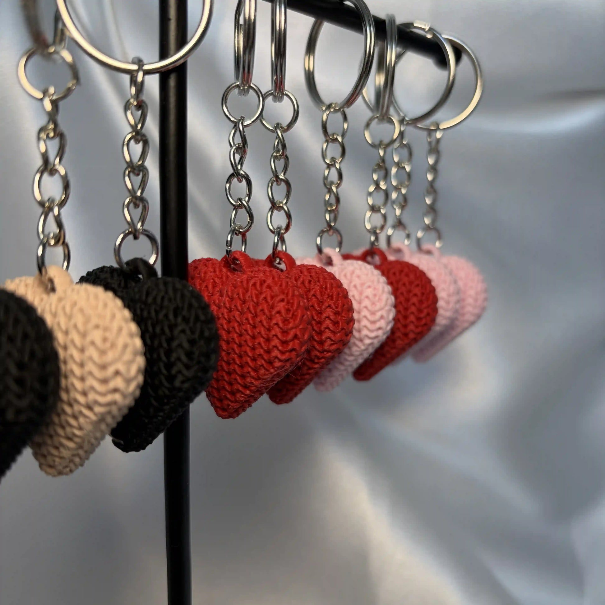 Dieser Herz-Schlüsselanhänger in weicher Strickoptik ist ein kleines Statement voller Wärme. Das strukturierte Herz wirkt gemütlich und modern zugleich und wird durch einen silberfarbenen Schlüsselring stilvoll ergänzt.